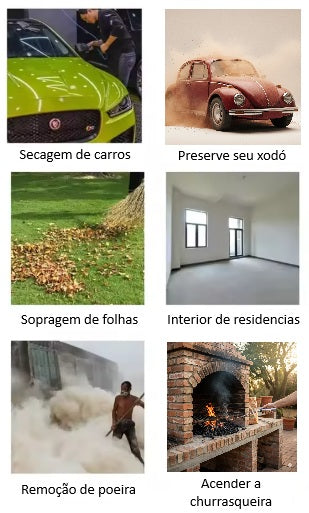 Pro, você tem um aliado poderoso para simplificar sua vida. Sua tecnologia de sopro turbo remove folhas e poeira de forma rápida, seca seu veículo em minutos e ainda acende a churrasqueira para aquela reunião com amigos. É a ferramenta multifuncional que transforma o trabalho em praticidade e o lazer em conveniência, tudo com a liberdade e versatilidade.