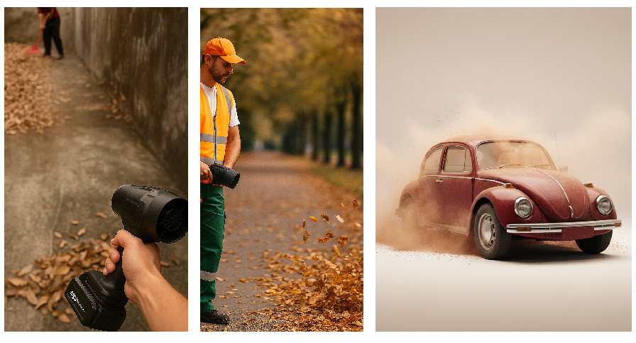 - Limpeza Rápida: Varre folhas e poeira de calçadas e jardins em segundos.